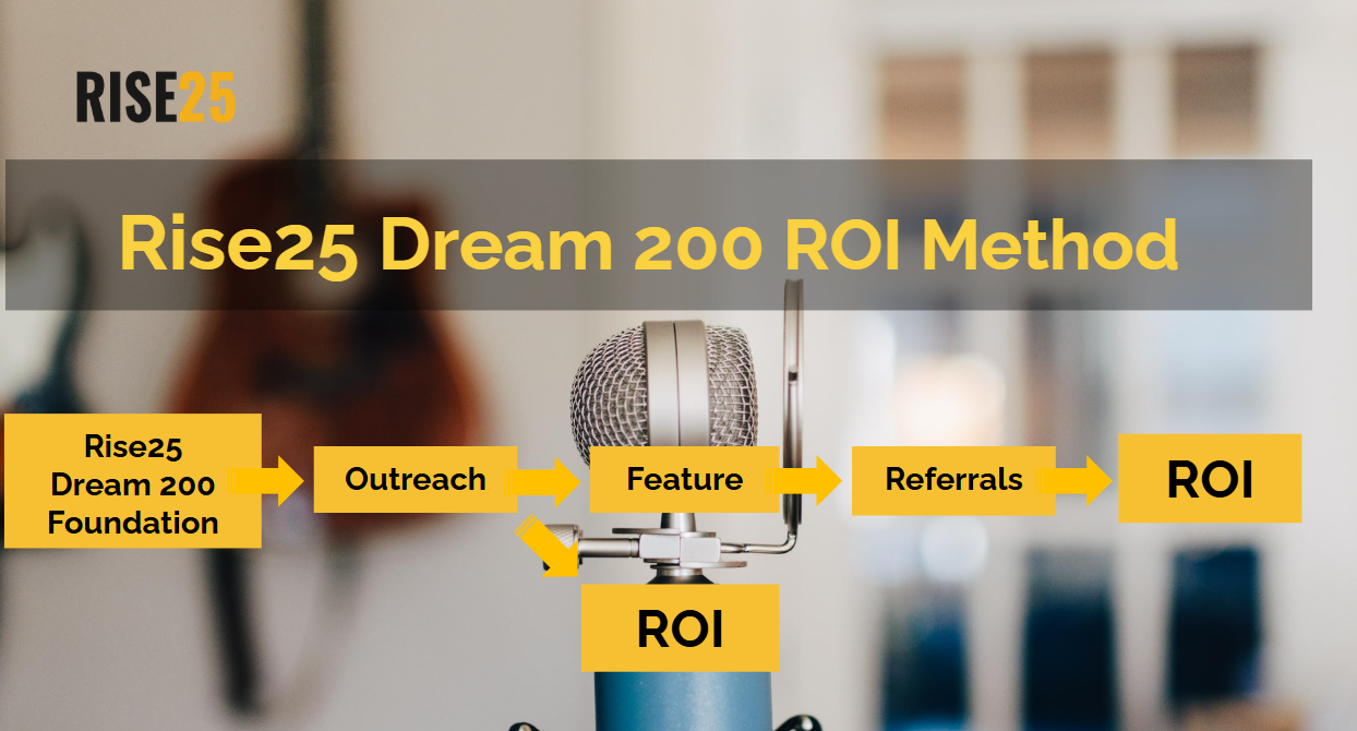 The video below provides a quick walkthrough of the Dream 200 Blueprint Session that you can share with your team so everyone is on the same page and knows the strategy and the goals behind setting up a podcast for you. Podcasting is a strategic way to connect with industry leaders and grow your business. Rise25 provides podcast production services that allow clients to focus solely on developing relationships and expanding their networks. Featuring guests on your podcast is another strategy that can lead to ROI, both directly and indirectly, and encourage network expansion.